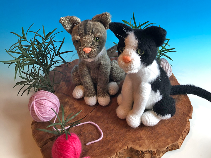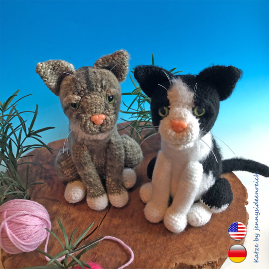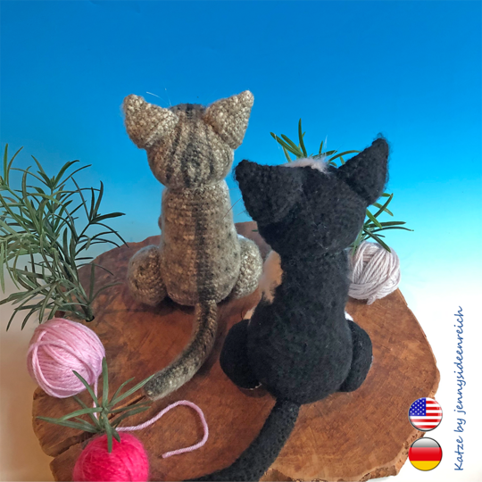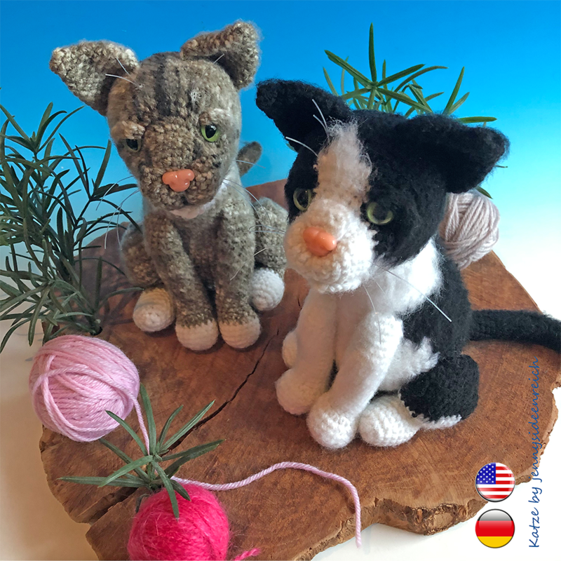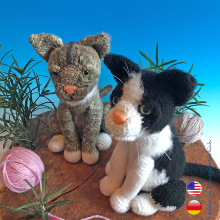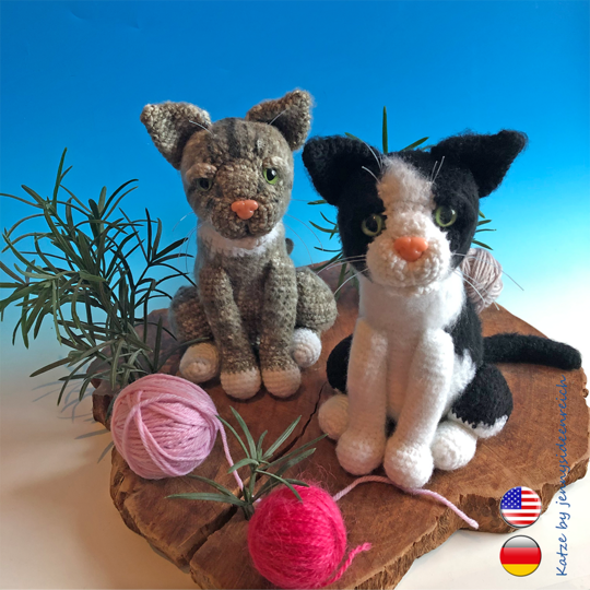 Additional material: stuffing, safety eyes 12mm, safety nose 15mm, yarn needle to sew together the parts, side cutter, hot-melt glue applicato, nylon string, craft glue, animal hair brush, black edding