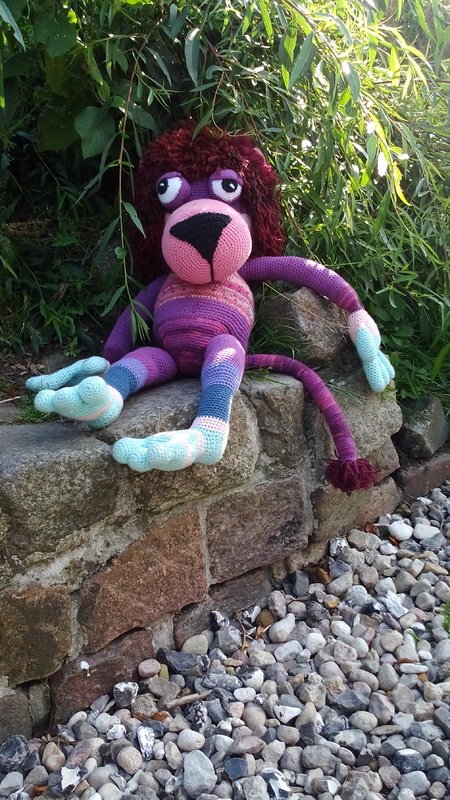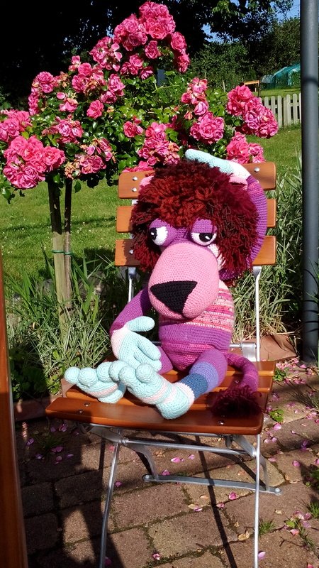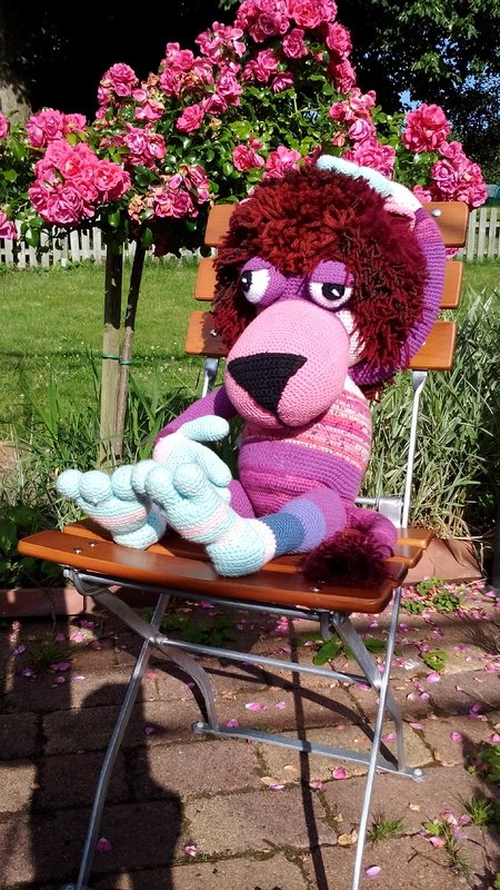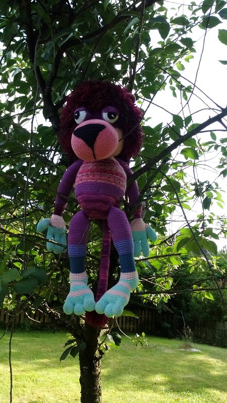Diese Anleitung beinhaltet keinen Grundkurs im Häkeln. Gearbeitet wird in Spiralrunden mit einem Fadenring, festen Maschen und Kettmaschen. Weiterhin werden Luftmaschen, Luftmaschenkette und Wendeluftmaschen gearbeitet. Die Löwenmähe wird eingeknüpft. Die Anleitung ist in PDF auf 13 Seiten beschrieben und beinhaltet