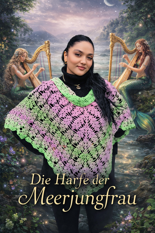 The pattern is written in both German and English and additionally includes stitch terminology in DE, US, and UK terms. As with all of my patterns, The Mermaid’s Harp was created with great care and has been thoroughly tested multiple times.