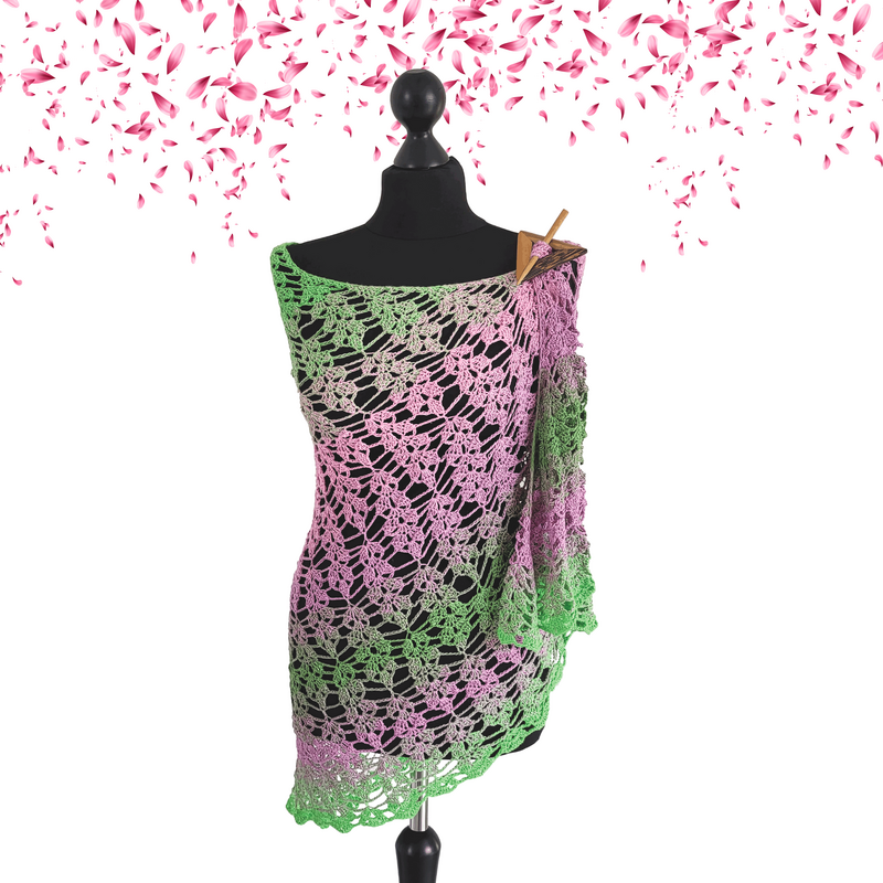 Thanks to the detailed written crochet instructions and the clearly structured crochet chart, this shawl can be worked comfortably and confidently by crocheters with basic skills. Step by step, a unique triangular shawl emerges, combining lightness, elegance, and a personal creative touch.