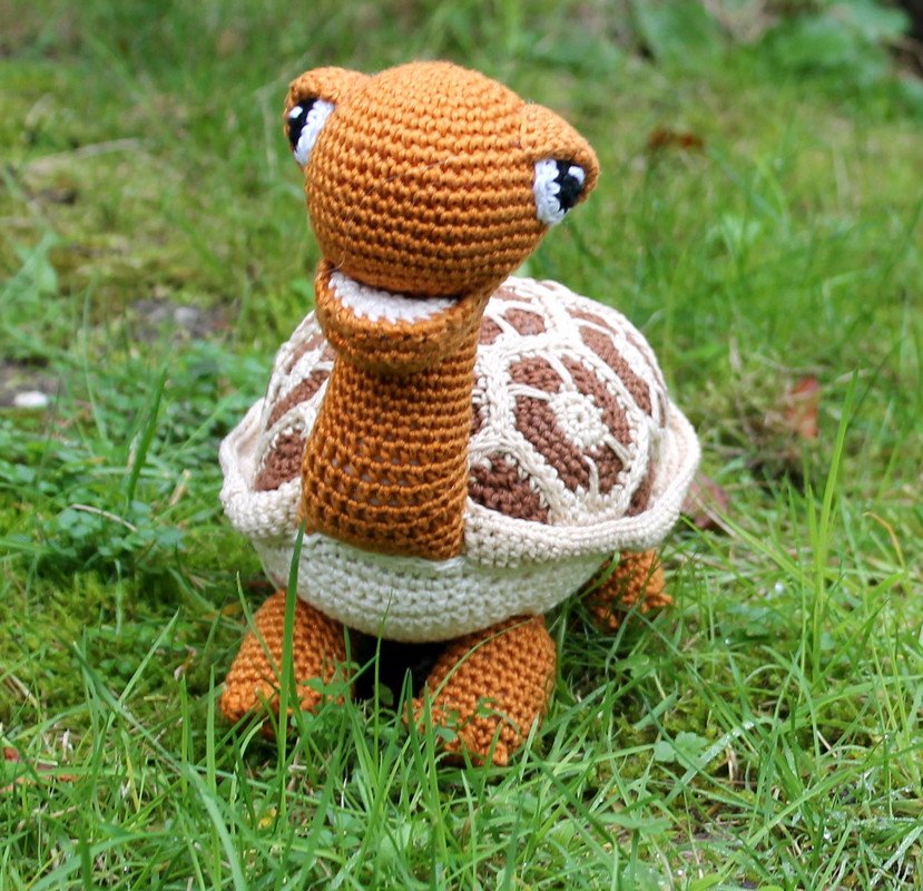 The crochet turtle may be sold, if you add the suitable link and a note: "Crochet after an instruction of masche-fuer-masche!".