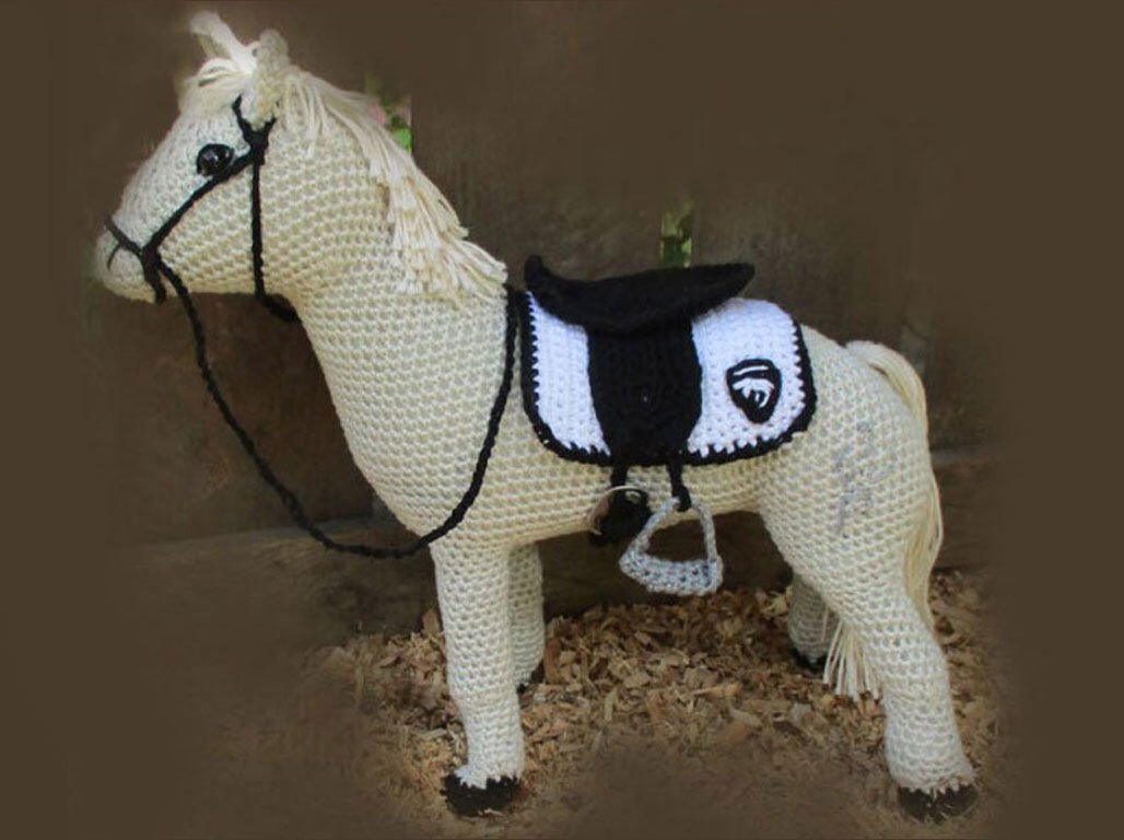 2 mm-crochet hook=the girl and 3 mm-crochet hook=the horse
