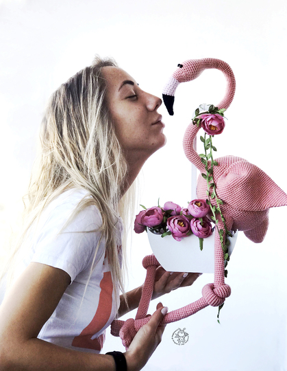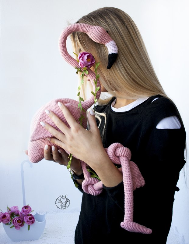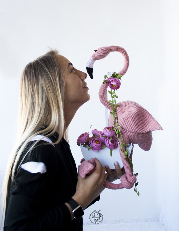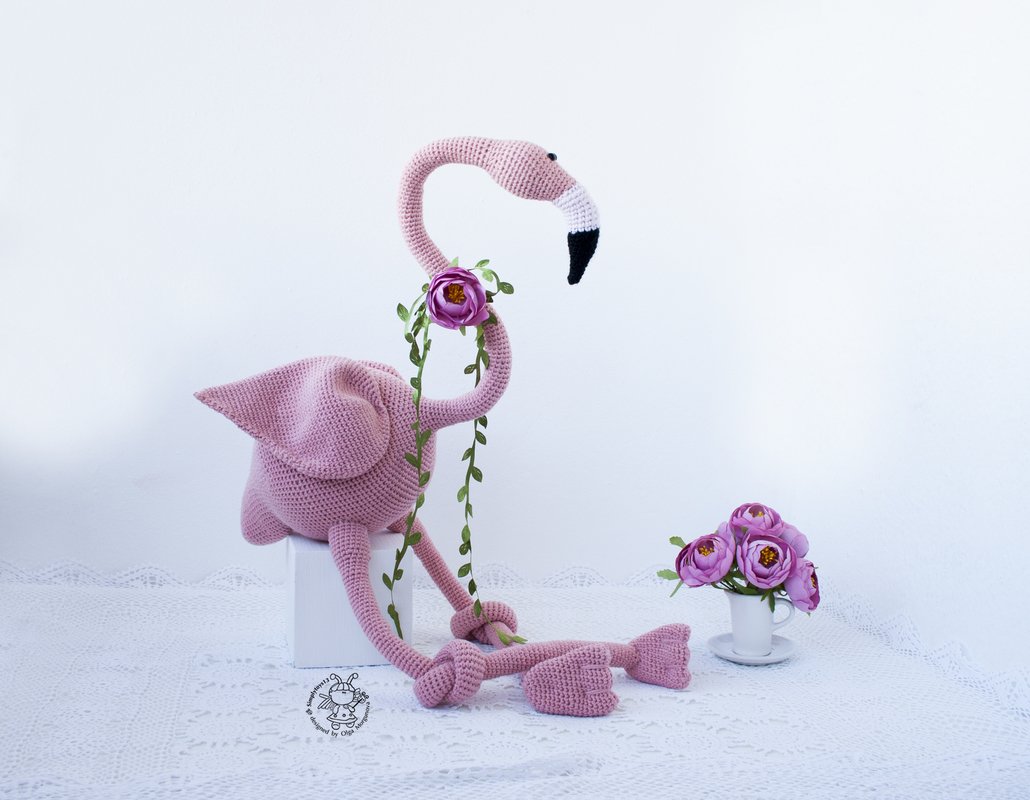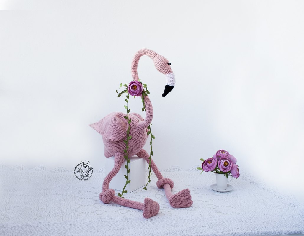 Big Pink flamingo toy. Crochet pattern