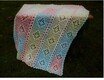 This wonderful baby blanket is crocheted with six join-as-you-crochet panels. The Lacy Diamonds pattern is a version of spider web lace and crochets up quickly and easily. The yarn is a lovely multi-color striping yarn, but you can use your imagination on colors or a solid color would be just as fabulous.