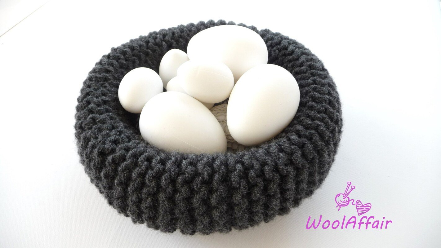 Both for deco or for the wrapping of small gifts for your kids (...and maybe adults as well). So much better than plastic Easter Nests and lovelier, too. Here is the pattern to knit a beautiful and useful Easter Basket. It goes quick and very easy.