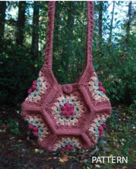 This offer is for a crochet pattern from Nancy Brown-Designer, a pattern for a unique bag crocheted in hexagons. This offer is for the crochet pattern only, not the finished bag.
