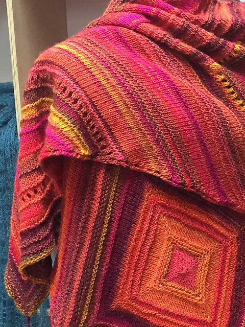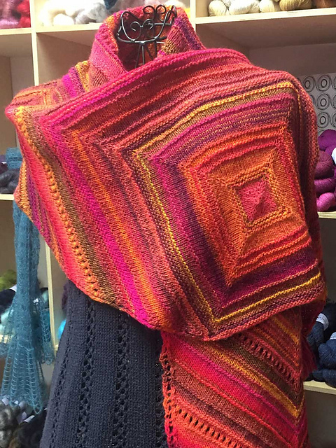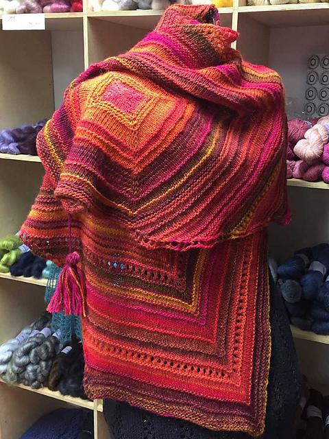 With this pattern, you can knit an impressive stole in a size of your choice. This pattern has first been published in Birgit's collection Colorways 1, promoting the beautiful yarn Filace Moira with the wonderful colour changes, but Moira can be easily substituted with a variegated yarn of similar weight.