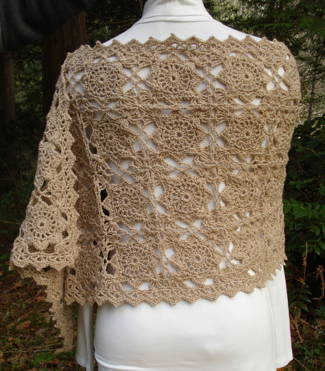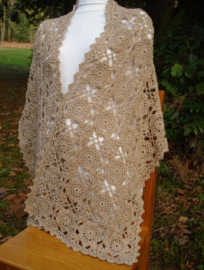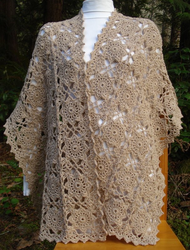 Materials: Yarn: The model shown in the photograph is crocheted in "Nevado" (a DK or size 3 weight yarn) from Omega Yarn. You will need approximately 1600 yards of almost any light weight yarn that will produce a 4" by 4" motif.