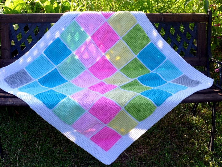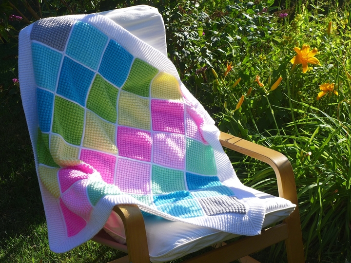 It is easy to make, even for beginners, as I explain and show everything step by step. However, we do need to be diligent and persistent. First we crochet lots of identical squares, which we crochet together at the end. As a decorative finish, we crochet a single-colored relief-like edge. The result is a beautiful new blanket for your child, grandchild or for yourself.