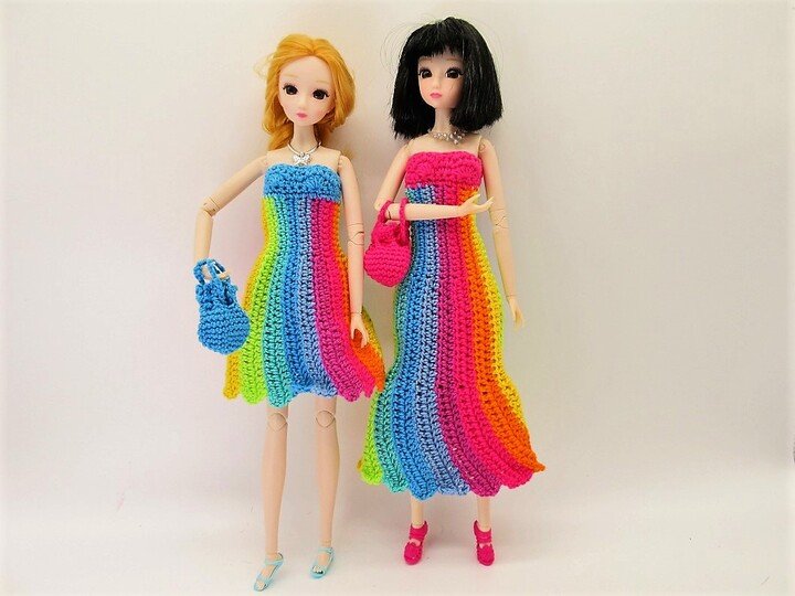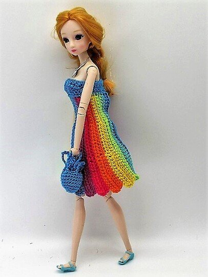 Die Anleitung ist 8 Seiten lang und enthält viele Bilder. Sie beschreibt das Häkeln des kurzen und des langen Kleids, sowie des Beutels. Außerdem gibt es Tipps, um das Kleid anderen Körperformen anzupassen (Veränderung von Weite bzw. Länge)