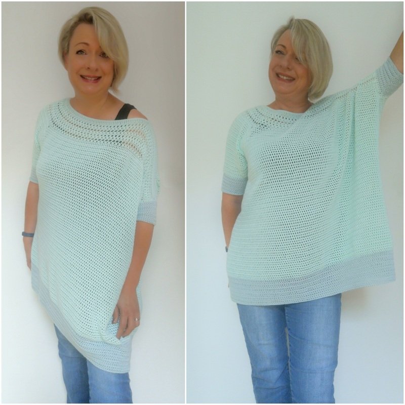 Der abgebildete Ponchover entspricht Kleider Größe 42 - 44, kann aber für alle anderen Größen gearbeitet werden.
