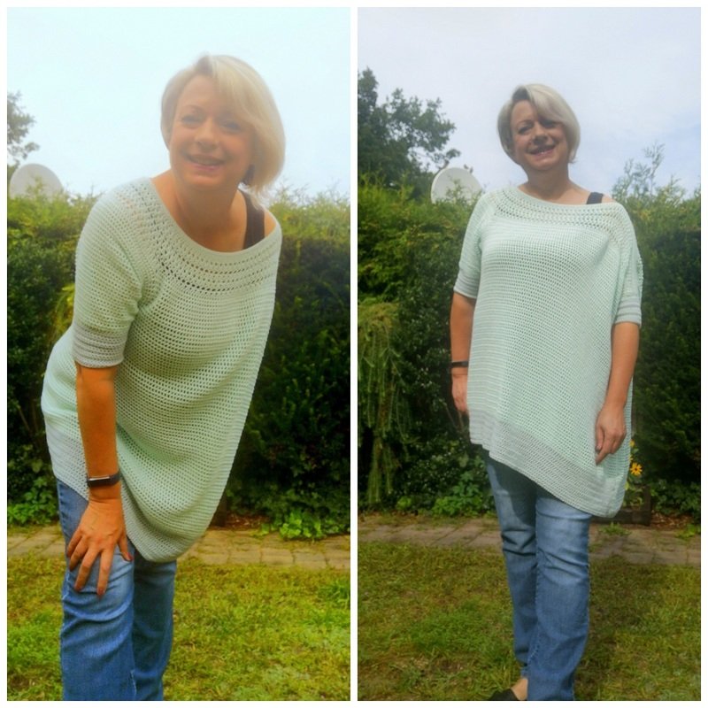 Auch dieses etwas andere, asymetrische Kleidungsstück ist eine Kombination aus Pullover und Poncho, ein Ponchover.