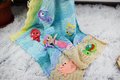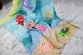 The blanket itself is made in simple wave stitch, that you can crochet while lying on couch and watching tv. For funnier look you can use different animal appliques as I did. They will make the blanket more colorful and more interesting for the baby to play with. You can play and learn with your toddler. You can show the baby different sea creatures, explain where they live and make learning easy and fun.