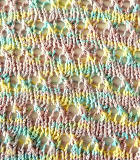 Difficulty level: easy (knit and purl, basic lace stitches)