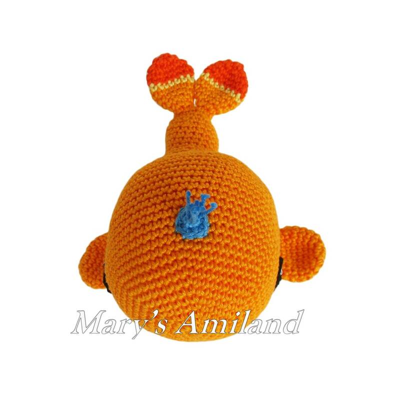 Noah is crocheted in one piece starting from body up to the tail, and then flippers, belly, eyes and spout are sewn on separately.