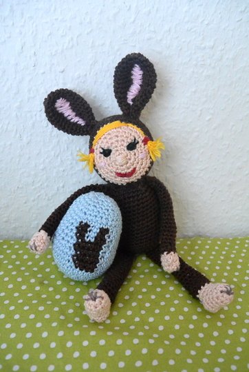 ...Hanni liebt Hasen und Ostern sowieso. Daher hat sie sich von ihrer Mama ein schönes Hasenoutfit nähen lassen und für Fotoshootings noch selbst ein Osterei mit Hasenkopf gebastelt...