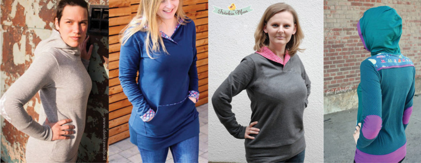 Das ausführlich bebilderte ebook enthält 3 Varianten: den klassischen Kragen, die Kragenkapuze und eine hochgeschlossene Eskimo-Kapuze.