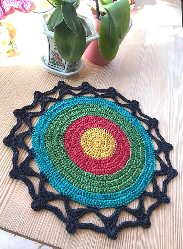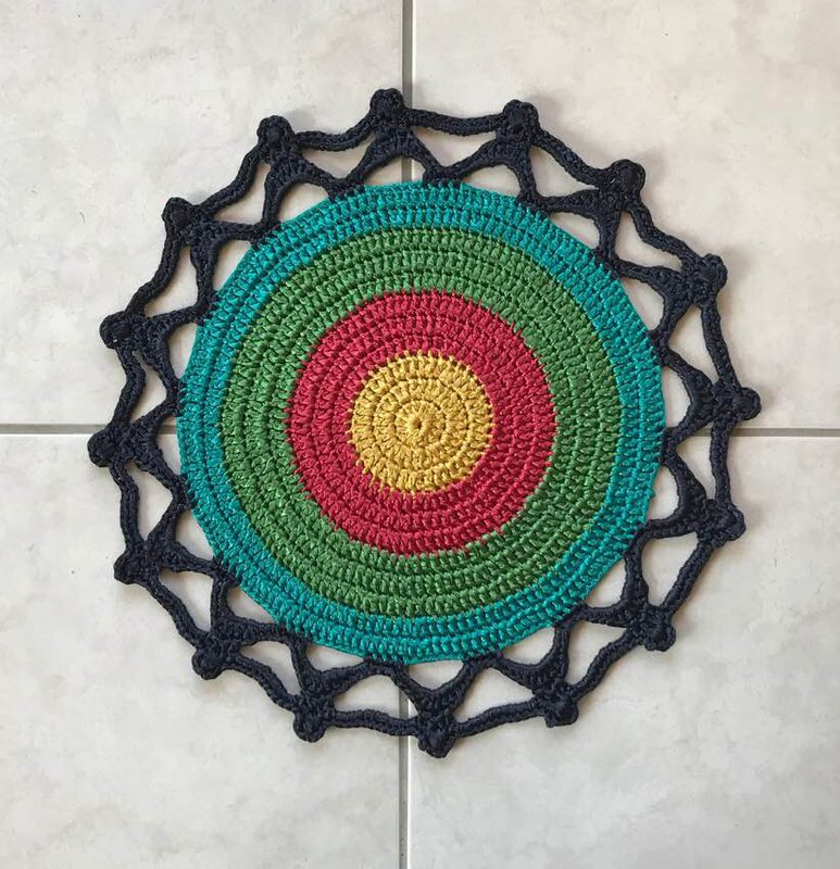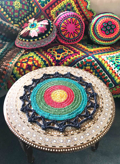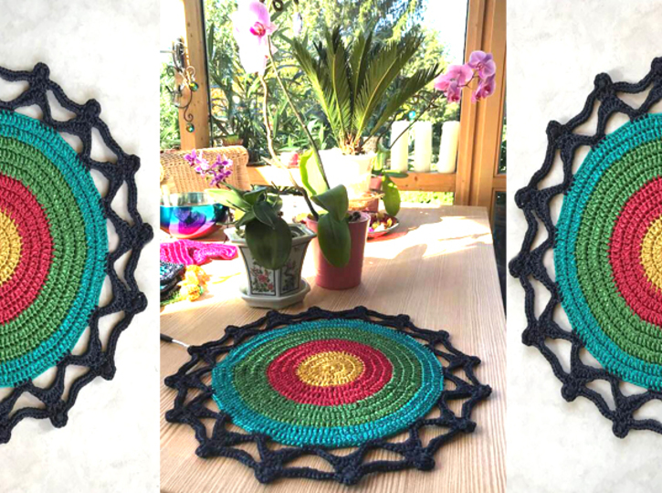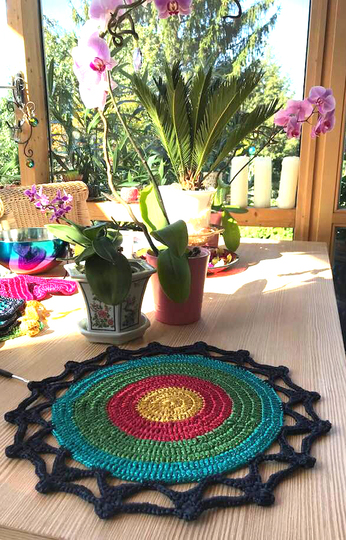 Die nette Tischdecke... oder auch das Platzdeckchen: "Give me your Hand" verschönert DeinenTisch! "Give me your Hand" ist ein tolle Handarbeit, die viel Freude bringt: Rund um den Mittelpunkt stehen 16 Figuren im Kreis, die sich die Hände reichen....ein schönes Symbol !