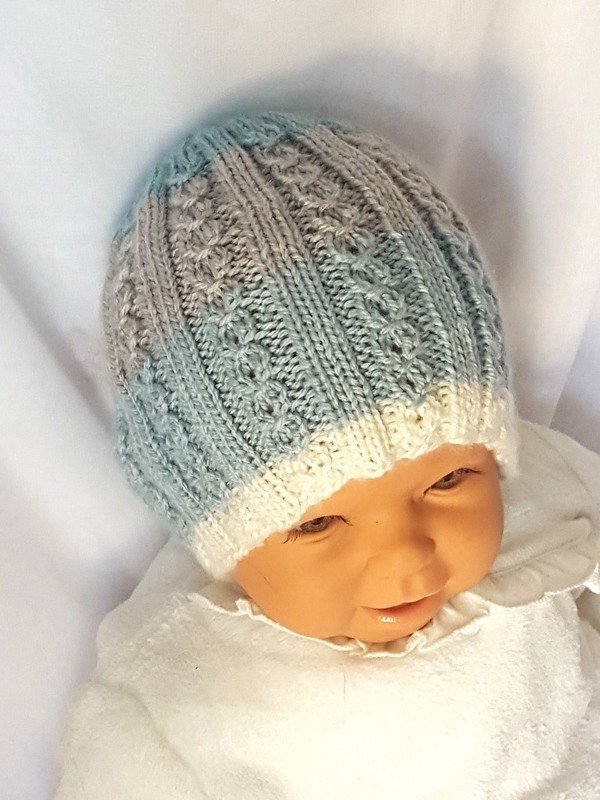 Die Mütze passt sich durch das Muster dem Köpfchen an und wächst eine zeitlang mit.