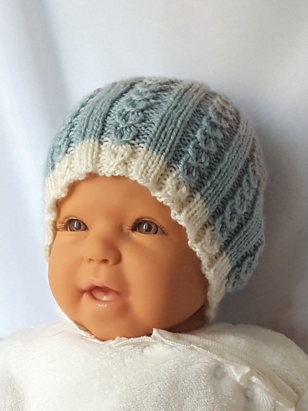 Absolut anfängertauglich ist diese Babymütze, da für das Muster keine weitere Hilfsnadel benötigt wird.