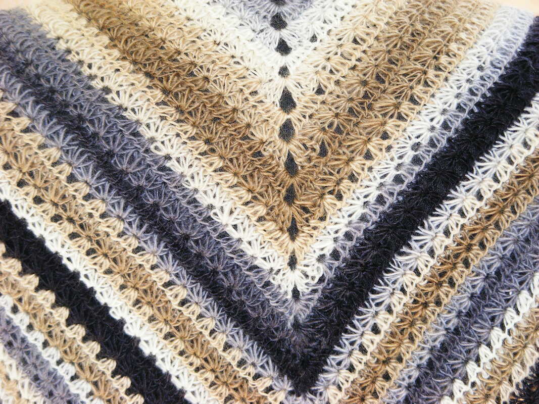 Das Tuch „Espina“ besteht aus Sternchen, die in zwei Runden gehäkelt werden. In der Anleitung wird ein Sternchengrundmuster ausführlich erklärt und viele verschiedene Varianten vorgestellt.