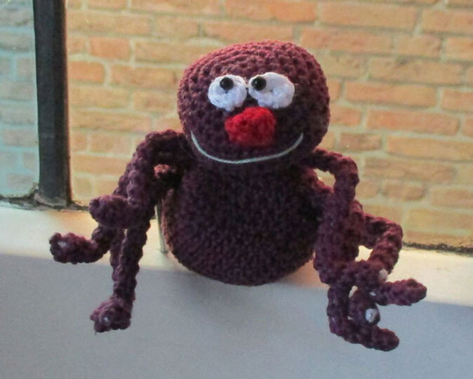 3 mm-crochet hook, Phildar Cotton : 3 x light green(=skincolor), 2 x yellow/gold, 1 x light gray, 1x dark gray, 2 x purple, little bit brown, little bit white, little bit black, little bit red
