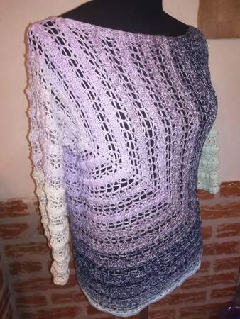 Der Pullover ist ein Kleidungsstück mit langen Ärmeln, dass an einem Stück gehäkelt wird. Deshalb ist er perfekt für Farbverlaufsgarn geeignet, da keine extra Ärmelbobbel benötigt werden.