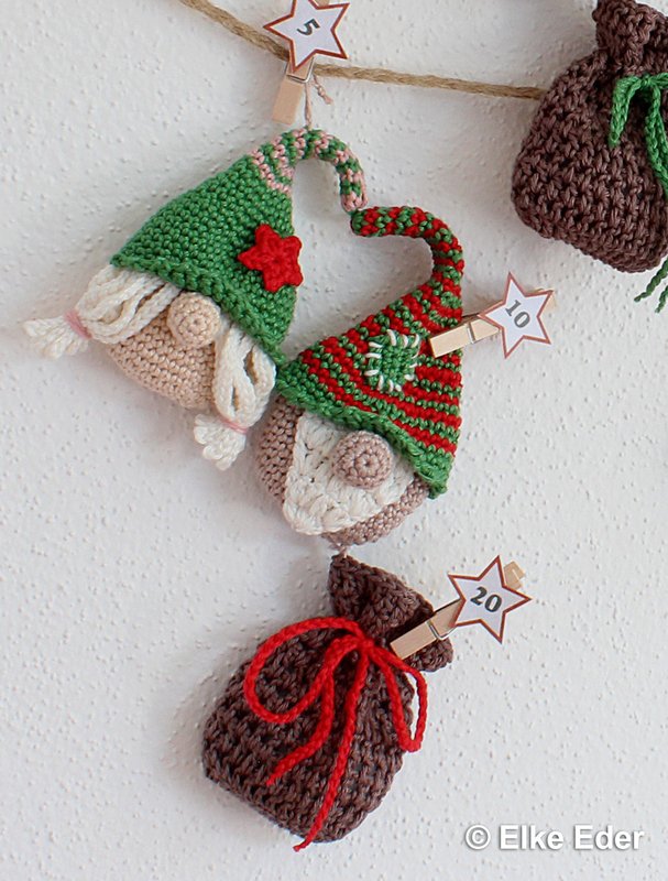 Advent Calendar with fillable Gnomes and Bags - Crochet Pattern