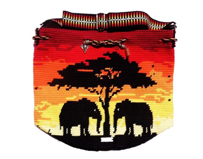 I designed the Mochila "Anki" from photos taken during an African holiday. I was so fascinated by the motif "African burkeas/elephants/sunset" that I thought I should crochet a mochila out of it. This is the result.