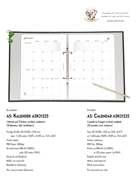 For dog fans: With this monthly calendar you keep the overview over your own or the appointments of your dog.