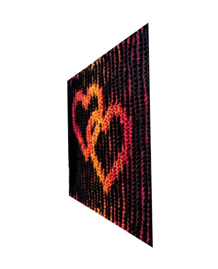 Die verschlungenen Herzen sind in der Technik "Illusionsstricken" gearbeitet.