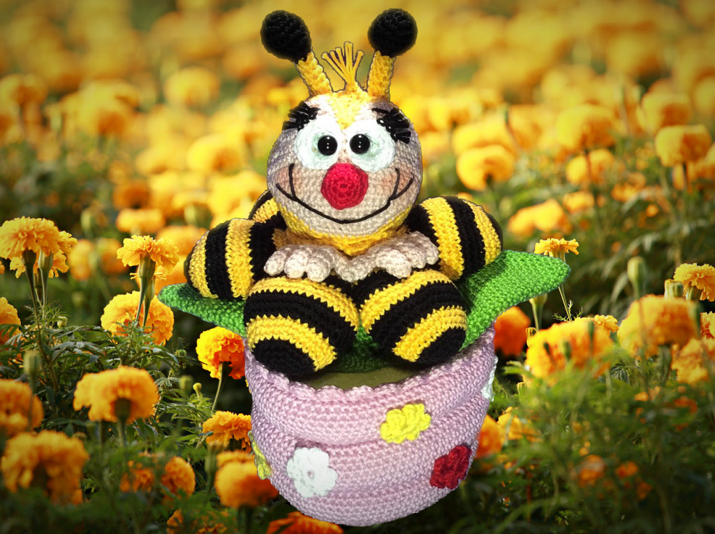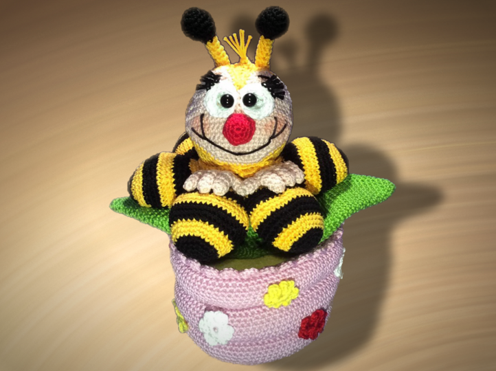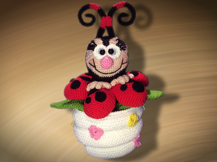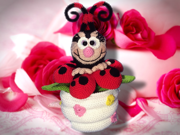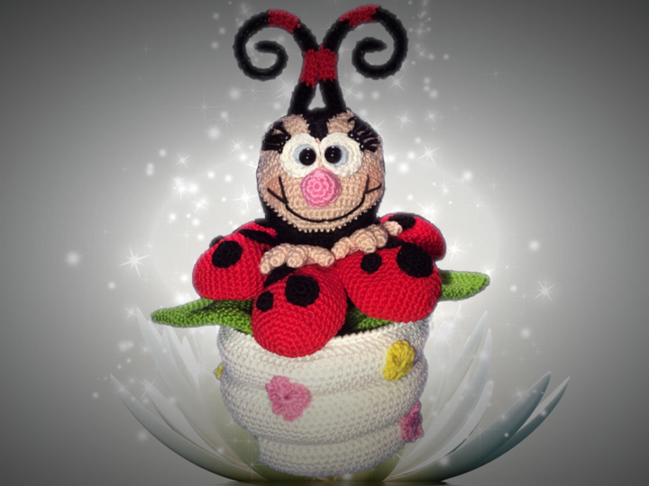 This crochet pattern included the pattern for ladybug, bee and the flower pots.