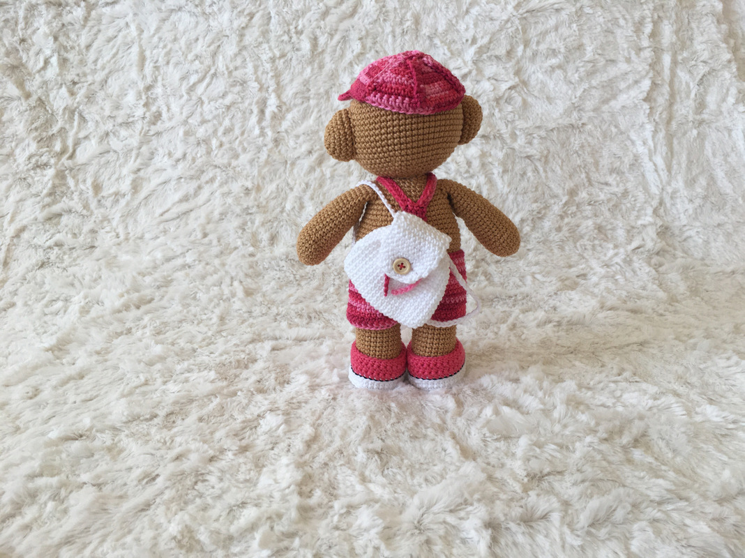 Die Anleitung beinhaltet auch die Kleidung, Basecap und Schuhe, sowie einen Rucksack und das Haarband.
