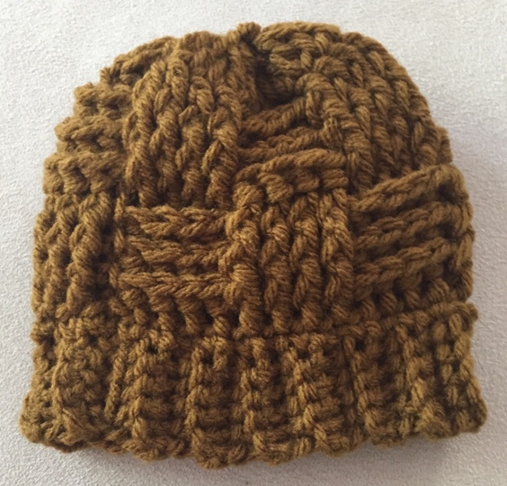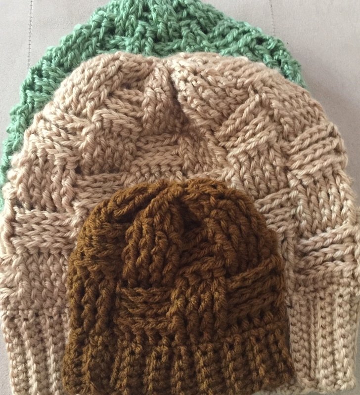 This crochet beanie tam is made in a basket weave design and there 3 sizes available.