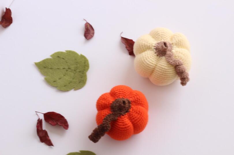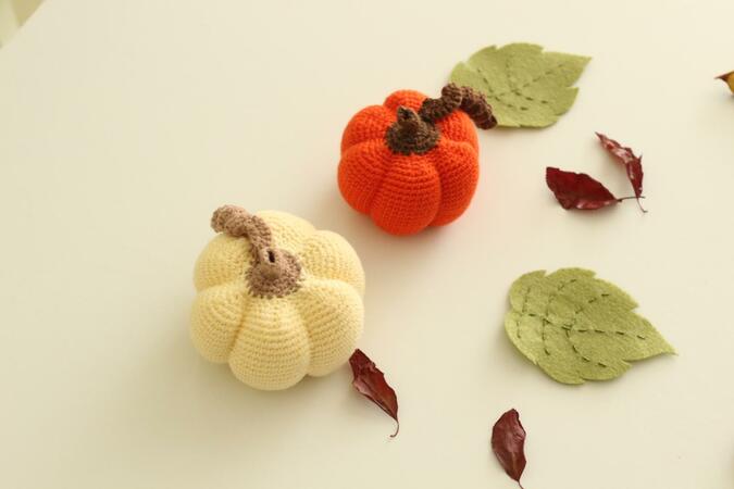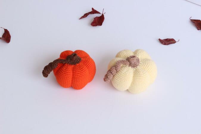Measurement of the finished pumpkins: 5 cm / 2 inch tall- 6 cm/ 2.8inc tall. Please remember, that the size of the finished project depends on used material and your own style of crocheting.