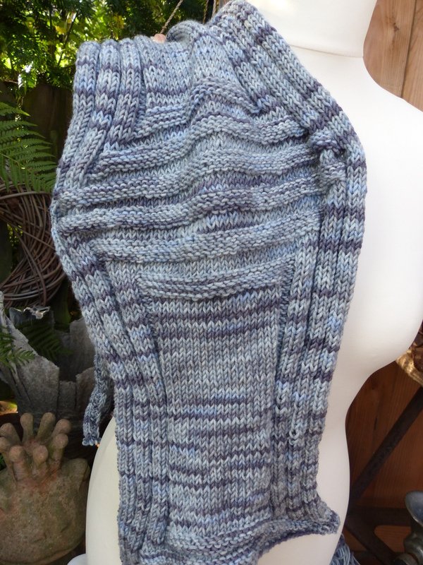 Durch das Wechseln dieser beiden Maschen entstehen die Quer- und Längsstreifen beim Tragen des Schals.