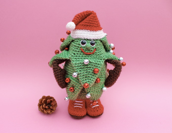 This pattern describes in US terminology how to crochet an adorable Christmas tree doll as shown in pictures. Because of its whimsical appearance and the small bells, this doll is a super cute Christmas decoration, but also a fun toy for older children (please note; not suitable as a toy for small children).