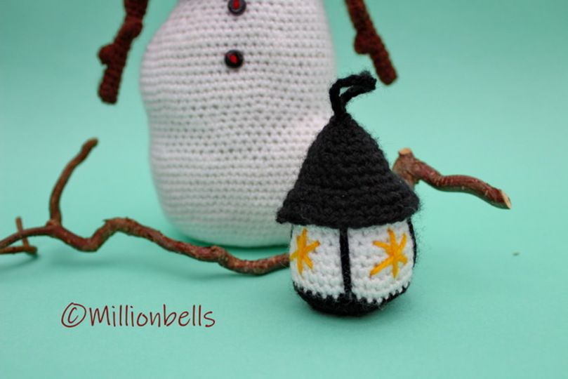 How about crocheting a snowman with lantern, to complete your Christmas decorations !