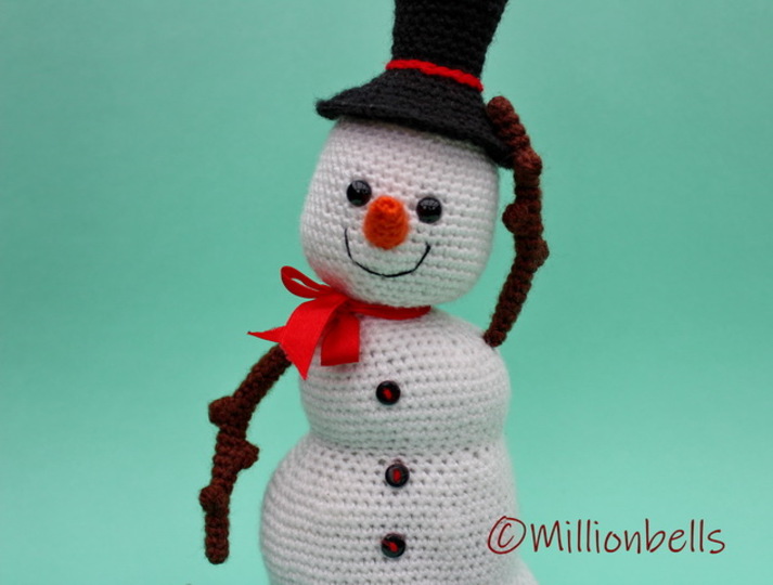 Finished size will be approx. 14.5” (34 cm) tall, crocheted using acrylic yarn (8 ply / DK), with hook size E (3.5 mm). If you wish to make a taller or smaller version of this snowman, you can just use thicker or thinner yarn / crochet hook. This pattern is also suitable for wool or cotton yarn.