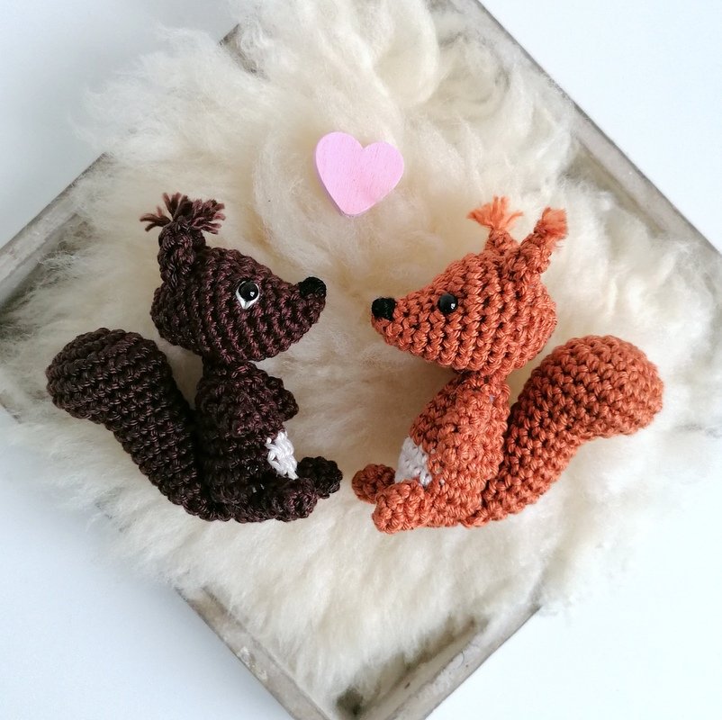 Cute little amigurumi squirrel for baby rattle or mobile, pacifier or pram chain!