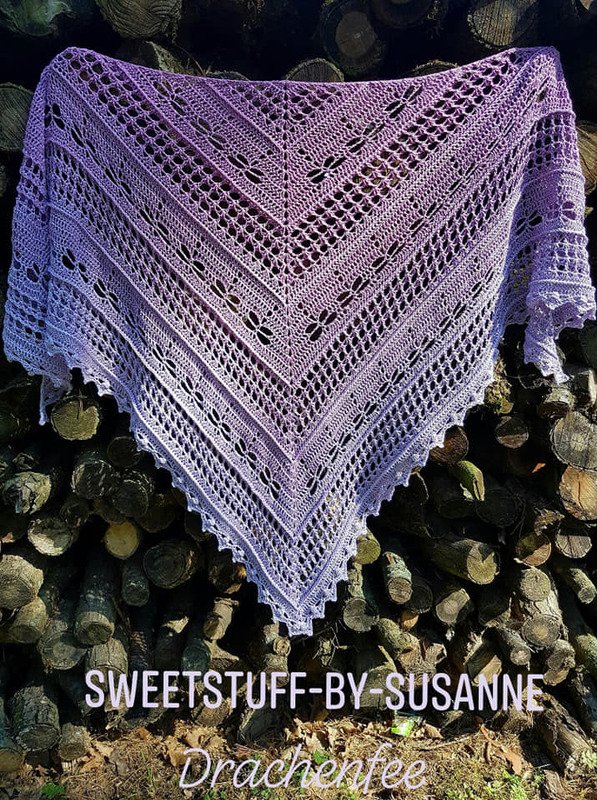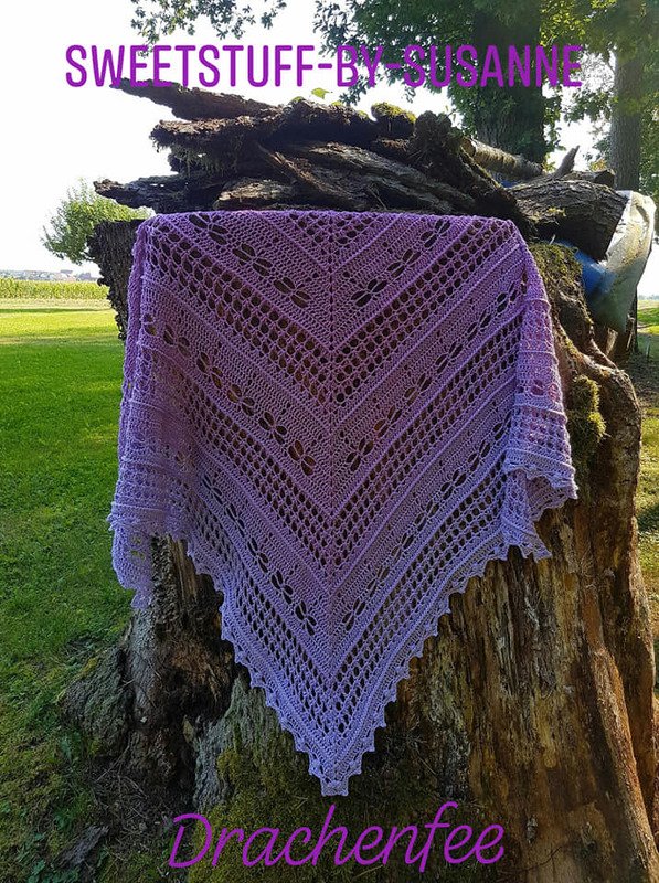 Libellen, ein luftiges Gittermuster und eine verspielte Abschlusskante - die Drachenfee ist ein romantisches Tuch in der klassischen Dreiecksform.