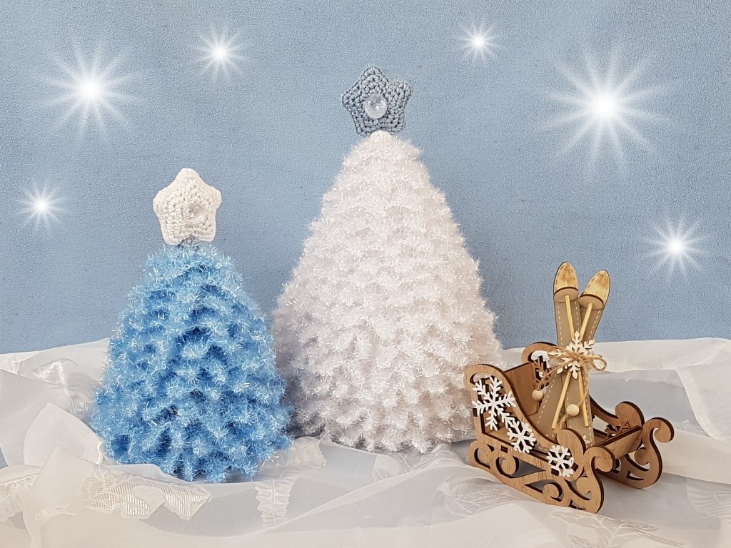 Die Bäumchen werden mit Schwammwolle gehäkelt. Glitzern und funkeln also von ganz allein. :)