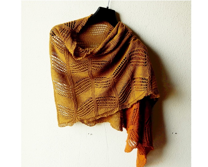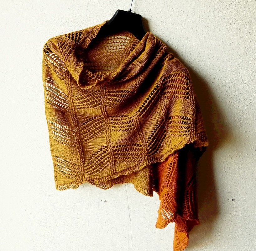 Damian is an easy-to-knit rectangular lace stole which can be worked in any lightweight yarn. You can make it a narrower scarf or an even wider stole, just as you prefer. The pattern is written and charted.