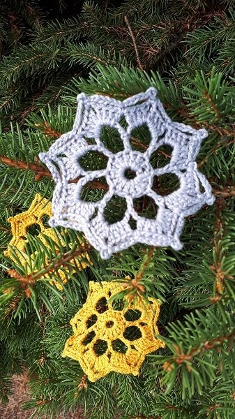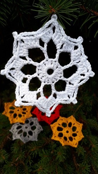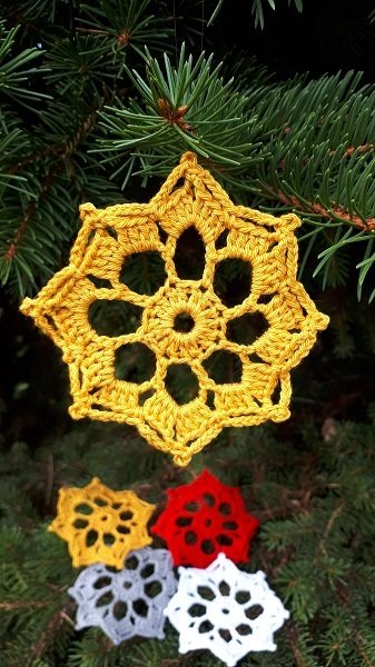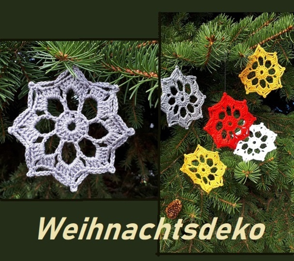 Schneesterne / Eiskristalle zum selber häkeln. Sie sind so vielseitig verwendbar: Am Weihnachtsbaum, im Fenster, als Geschenkanhänger, am Adventskranz , als Untersetzer für den Punsch,
