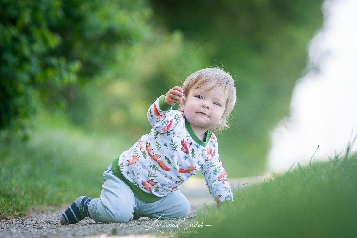 Der „Sweater LIZ“ ist ein Basic-Schnitt für einen coolen Pulli mit Halsbündchen – für die Kleinen mit Knopfleiste und für die Größeren kann das Bündchen auch durchgehend genäht werden. In der Anleitung werden beide Varianten ausführlich erklärt und es gibt auch ein Tutorial für die Versäuberung der Nackennaht mittels Jersey-Streifen. Genäht wird der Sweater LIZ beispielsweise aus Sweat, French Terry oder Jersey.