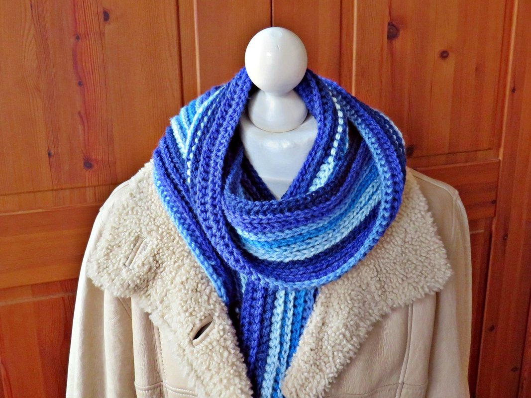 Gehäkelt aus einem Cake Farbverlaufsgarn in schönen Blau- Tönen.
