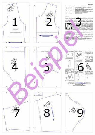 7 pages for pattern pieces (DIN A4)