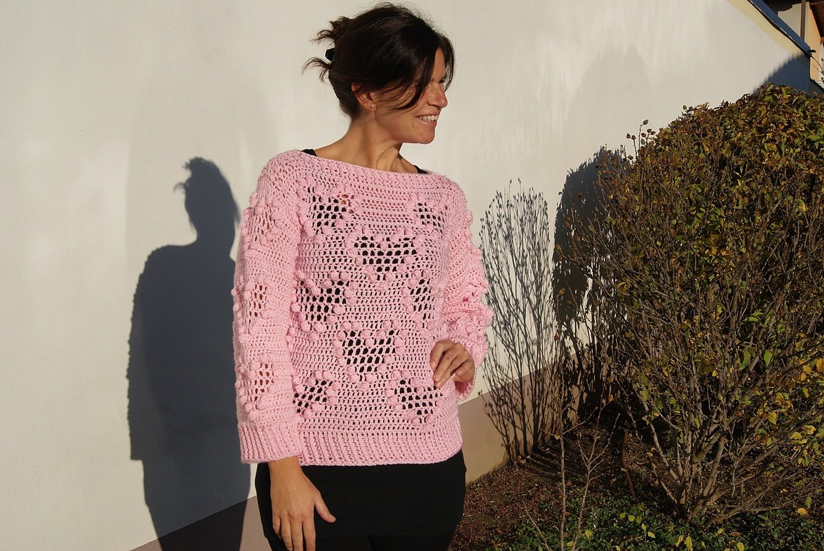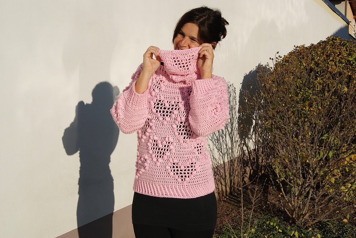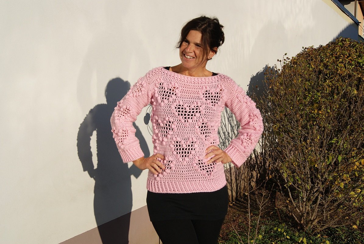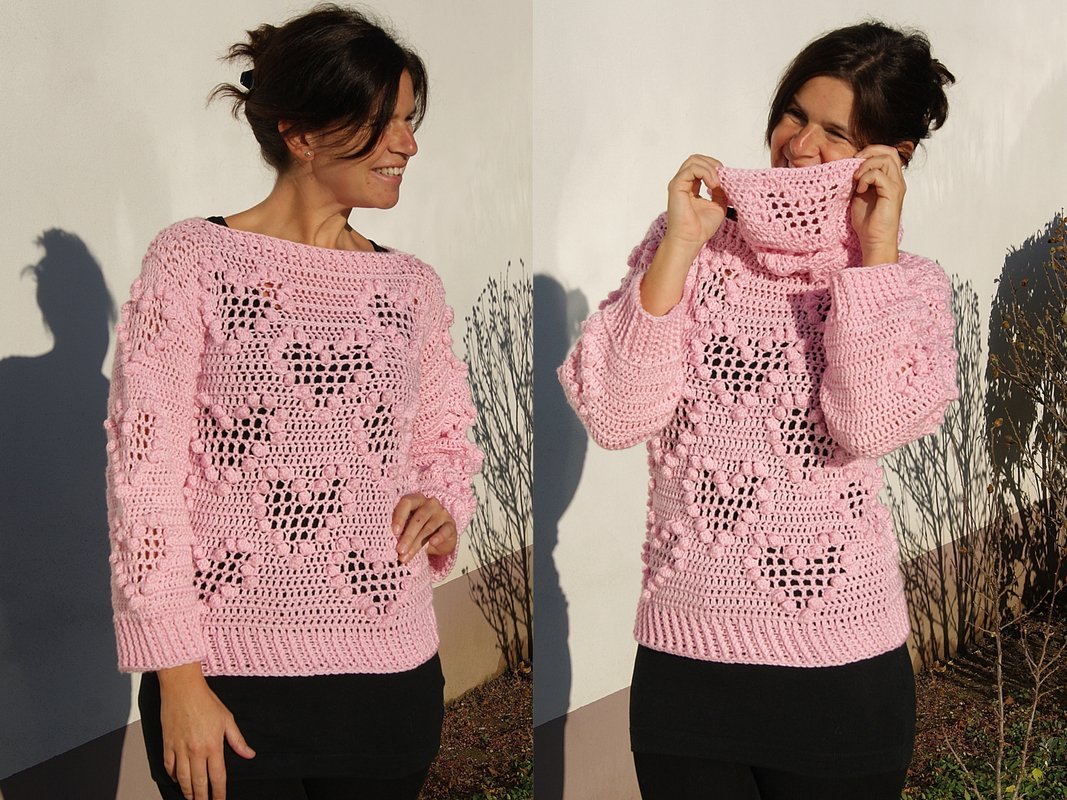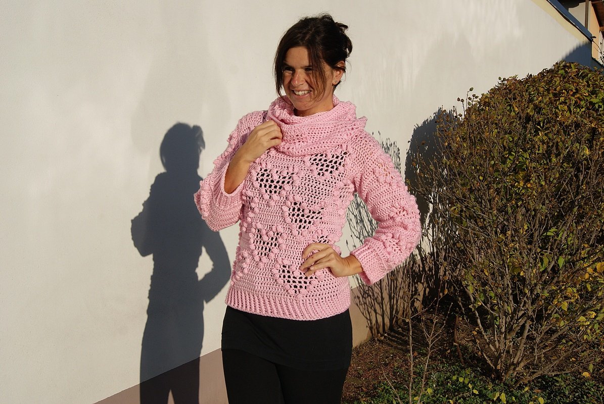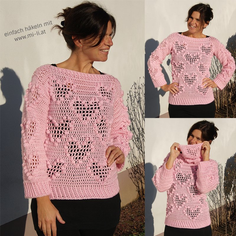 Traumhaft schöner und super angenehmer Pulli mit Loop passend zu jeder Gelegenheit! Das raffinierte Muster ist ein garantierter Hingucker und macht riesig Spaß zu häkeln. Ganz toll mit oder ohne Loop zu tragen!