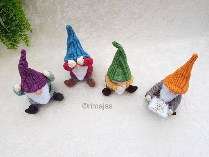 Die Wichtel sind mit angegebenem Material und Nadelstärke ca. 18 cm groß.