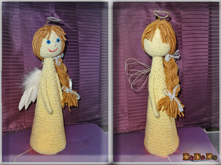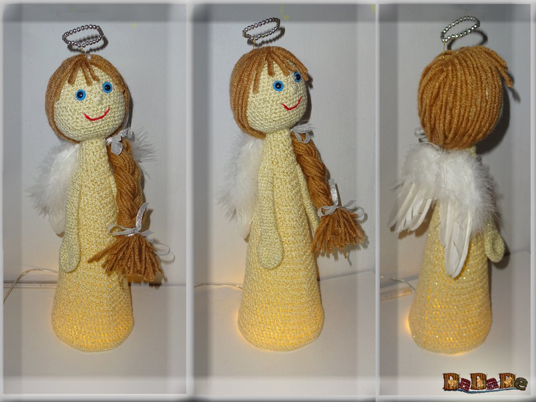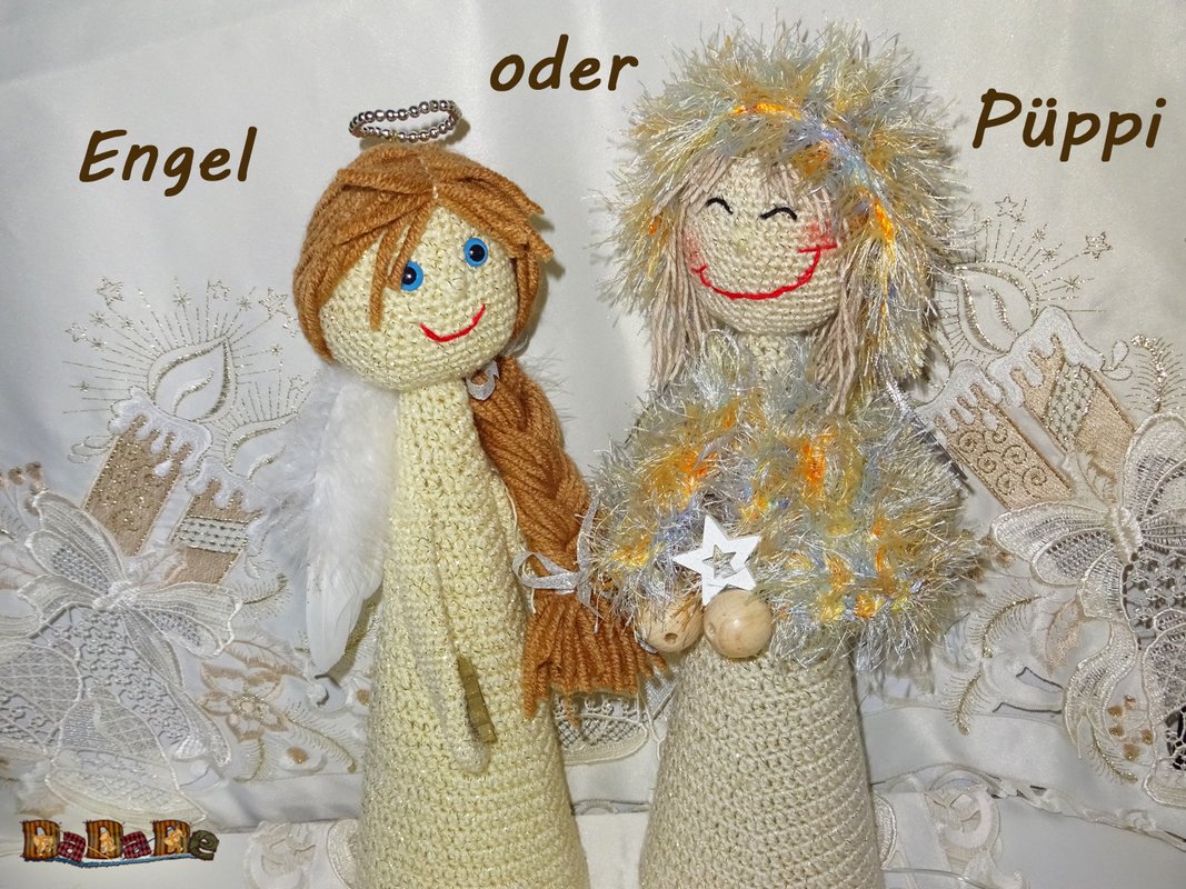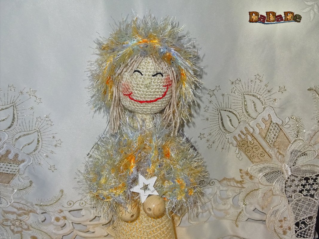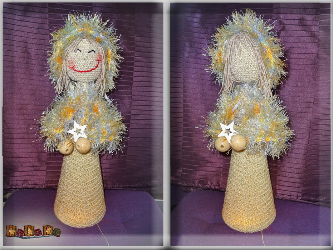 Mit Glitzerwolle der Nadelstärke 3 wird der Engel ungefähr ;